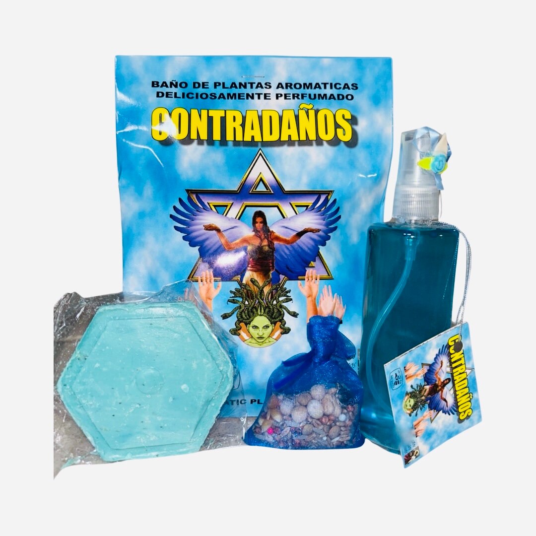 CONTRA DAÑOS Kit Ritualizado con Perfume + Baño Aromatico + Jabon + Amuleto