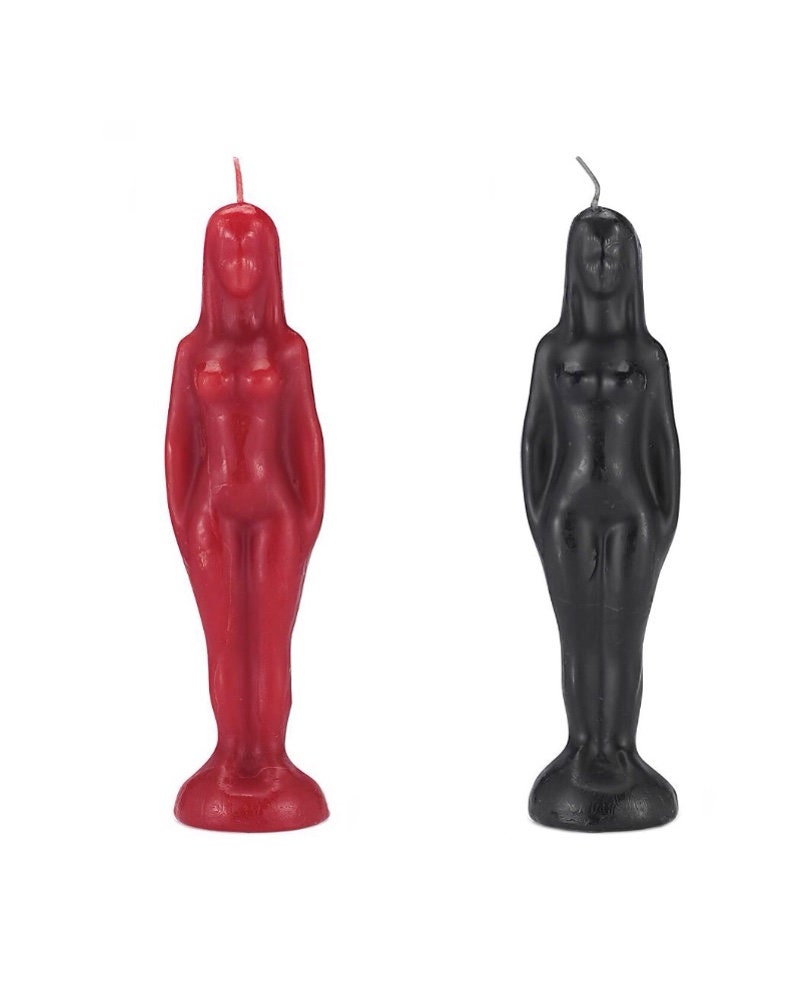 Female Figure Black Candle, Red Candle Woman Wicca Spell Pagan Hoodoo - Vela Negra, Roja Mujer