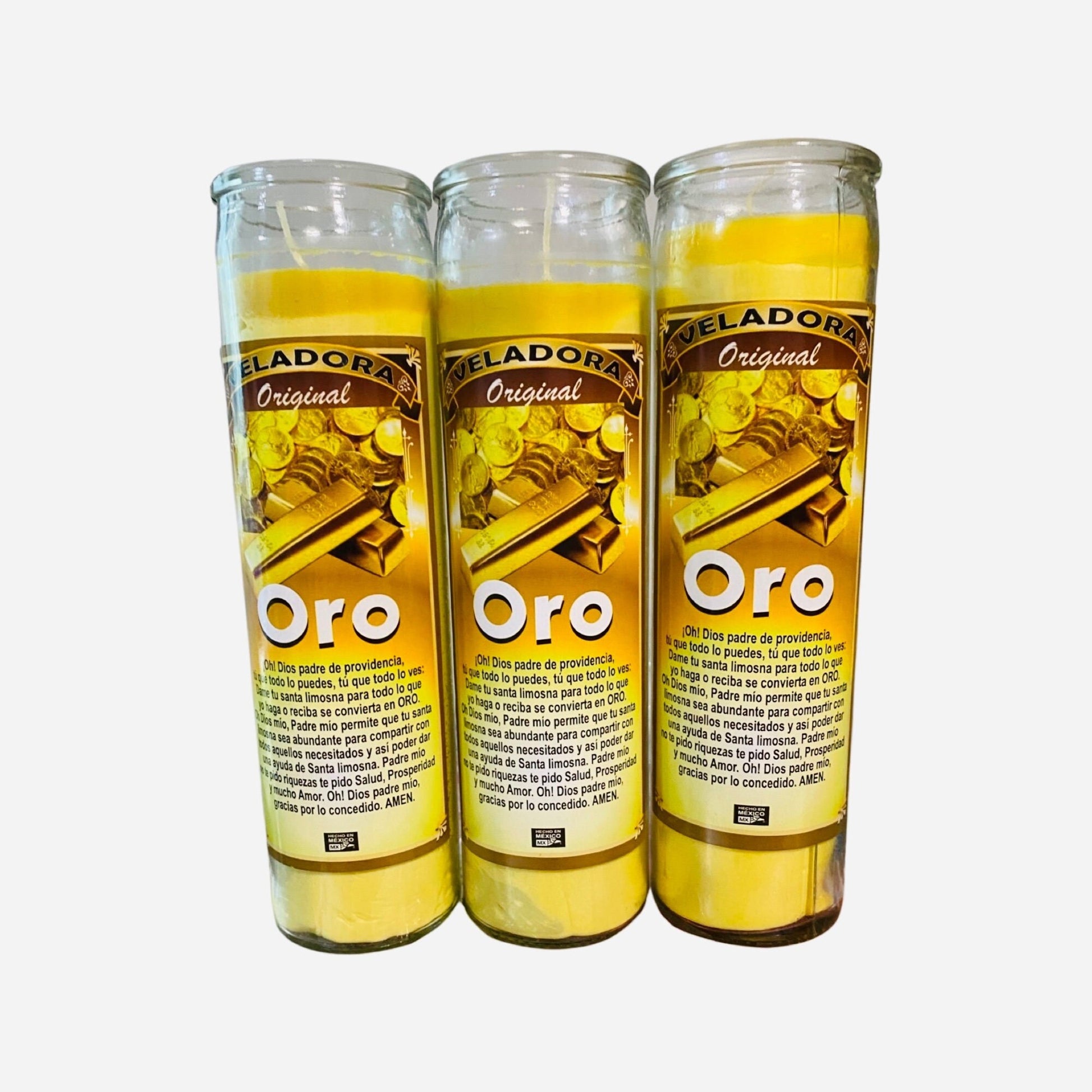 ORO VELADORA - GOLD Candle Para Prosperidad y Dinero