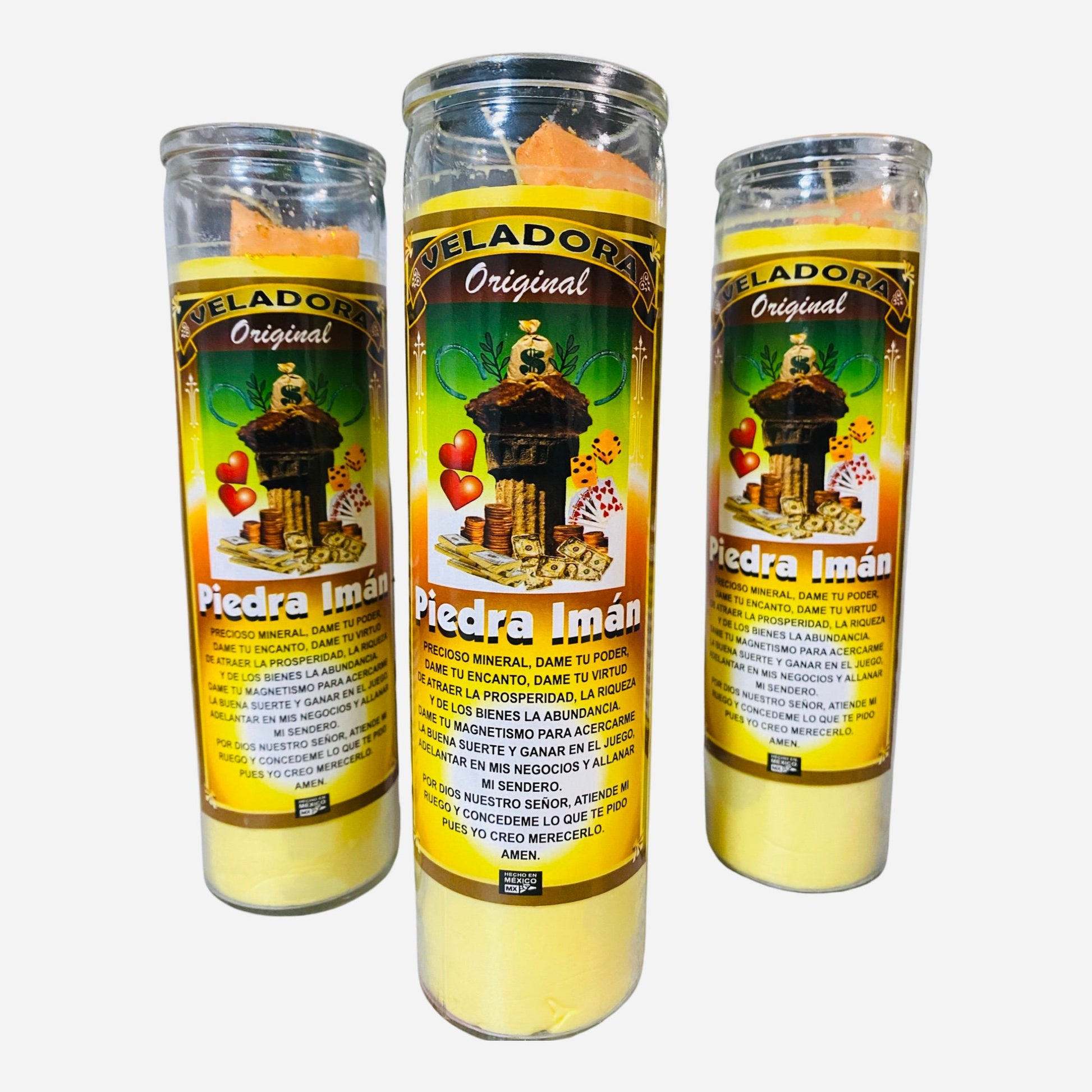Piedra Iman Veladora Preparada, Lodestone Fixed Candle, Brings Abundance and Success