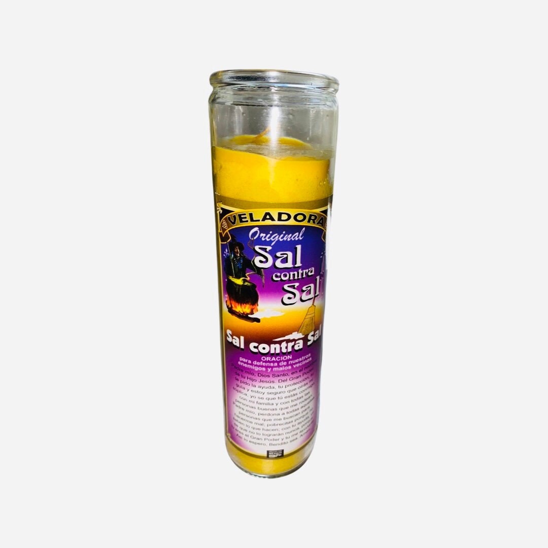 SAL CONTRA SAL Veladora Curada Para Defensa Contra Enemigos y Malos Vecinos