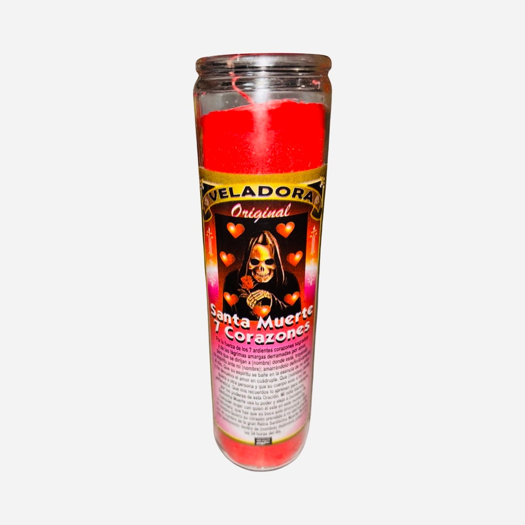 SANTA MUERTE 7 CORAZONES Veladora Para el Amor y Amarre - Santisima Muerte Roja Pasion