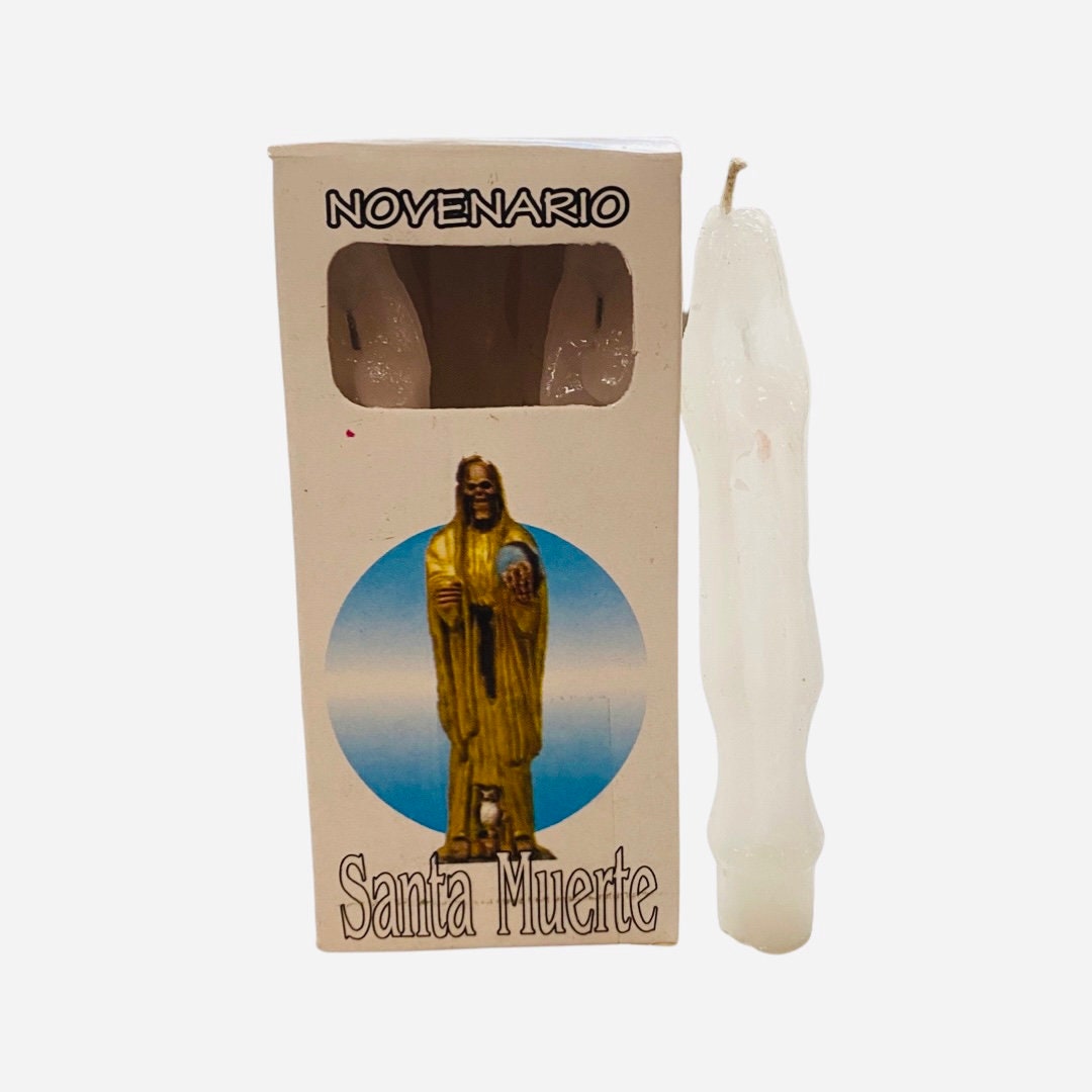 Santa Muerte Novenario 9 Velas Blancas- Holy Death Figure Novena 9 White Candles
