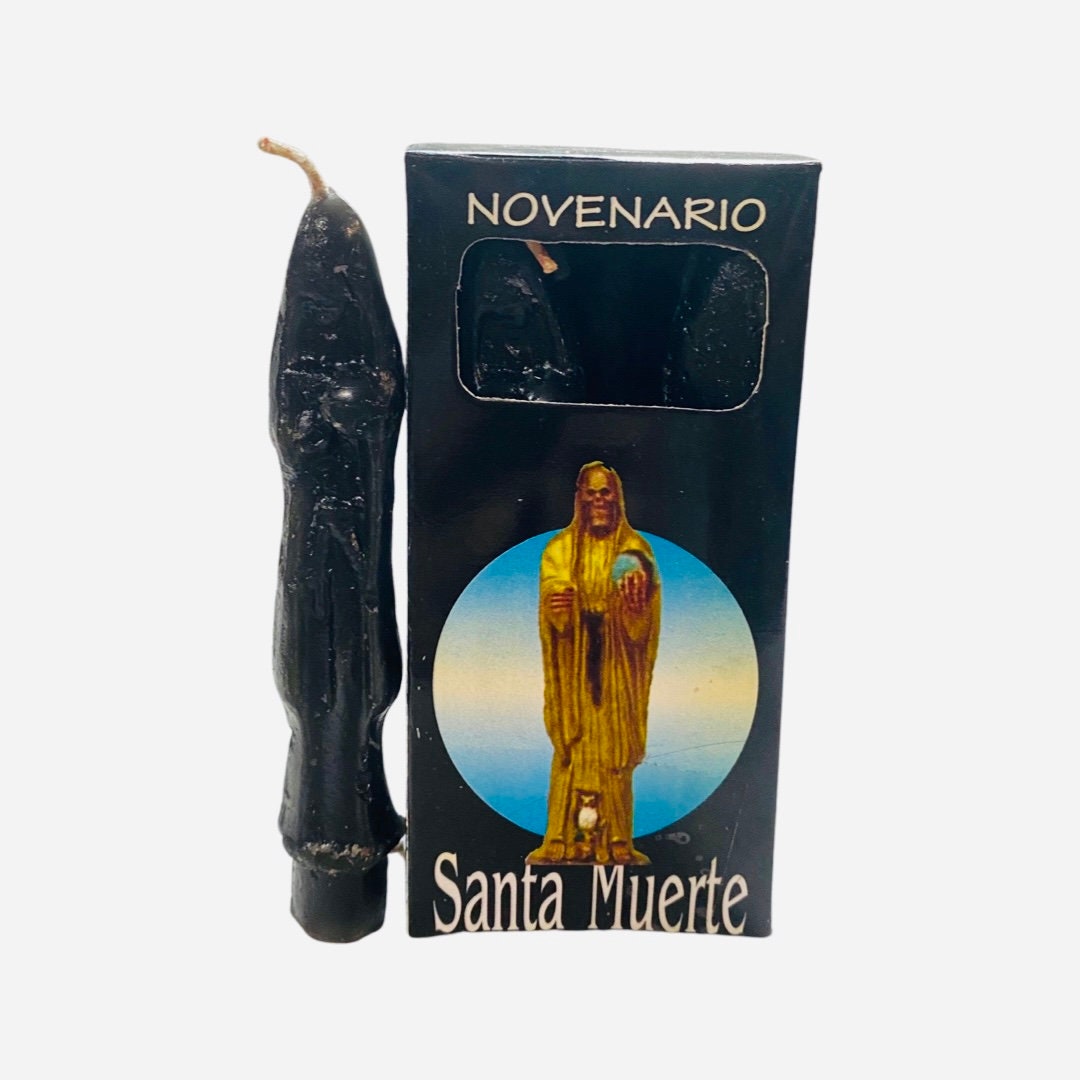 Santa Muerte Novenario 9 Velas Negras- Holy Death Figure Novena 9 Black Candles