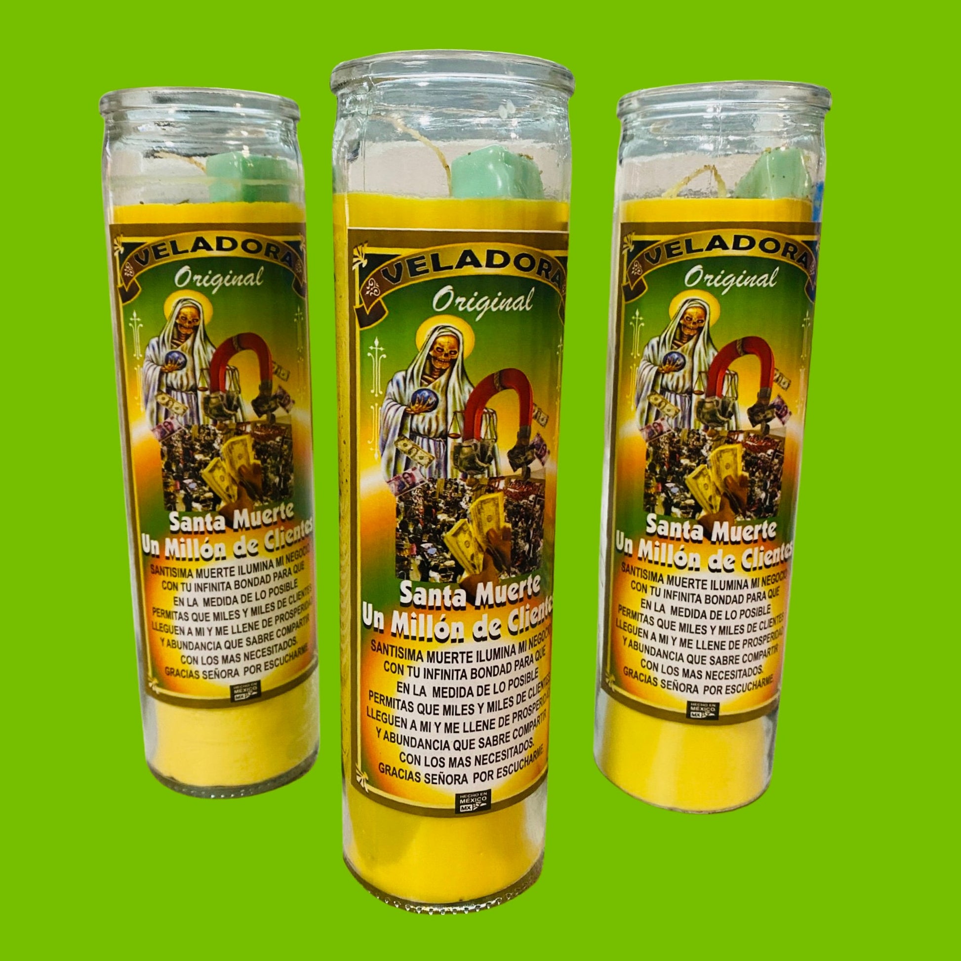 Santa Muerte Un Millon de Clientes Veladora Preparada Llama Clientes - Holy Death Million Clients Candle,