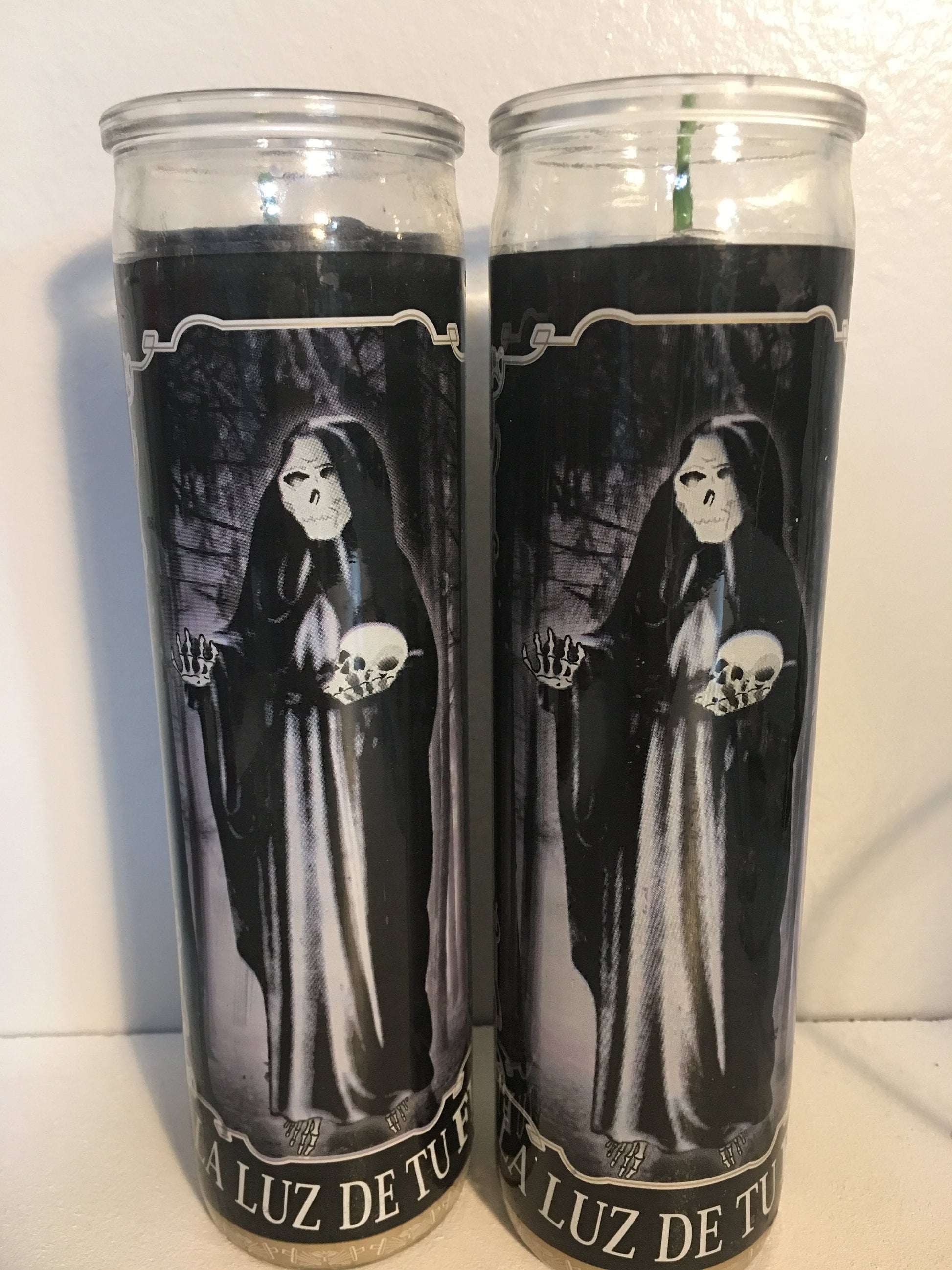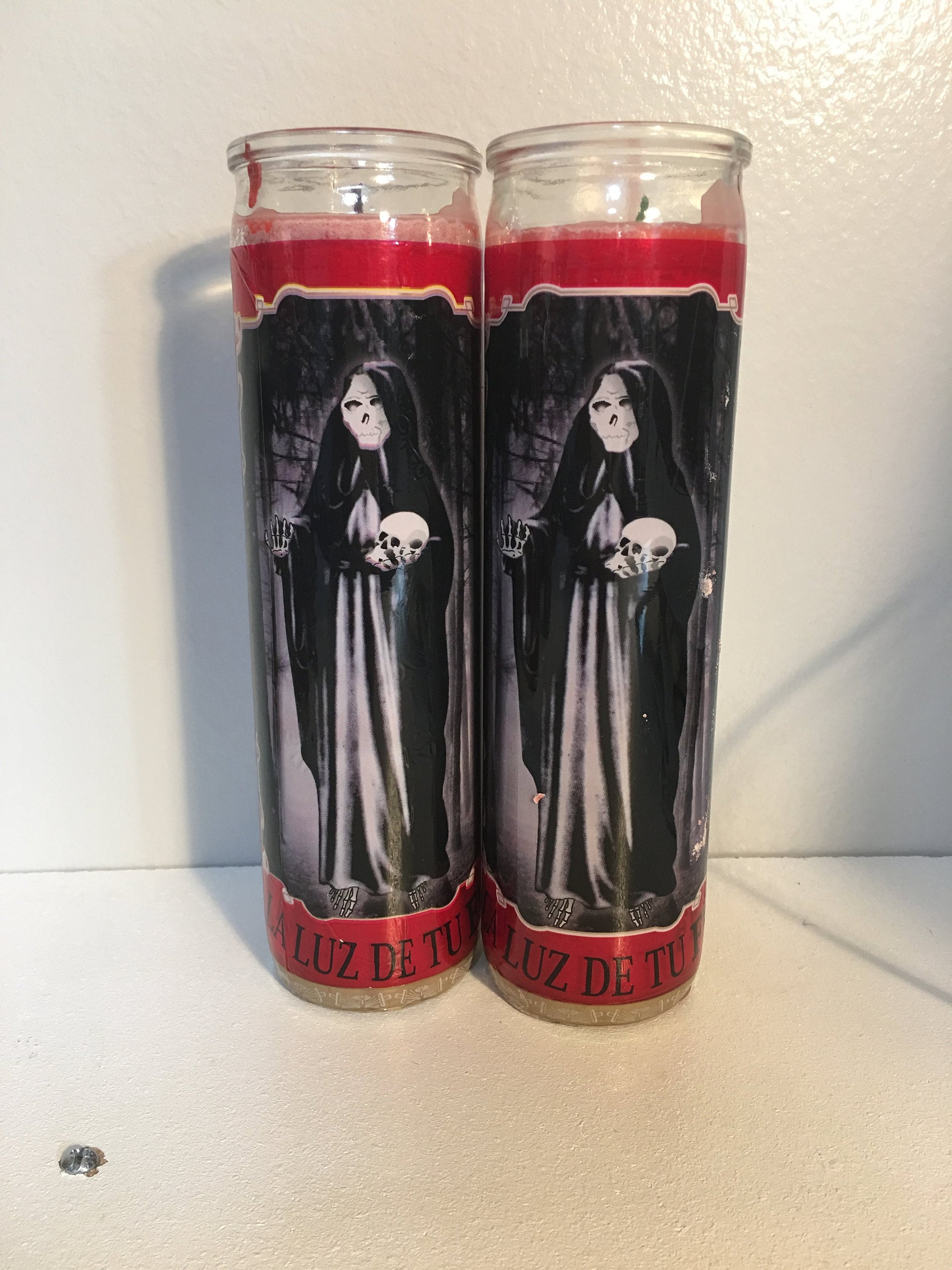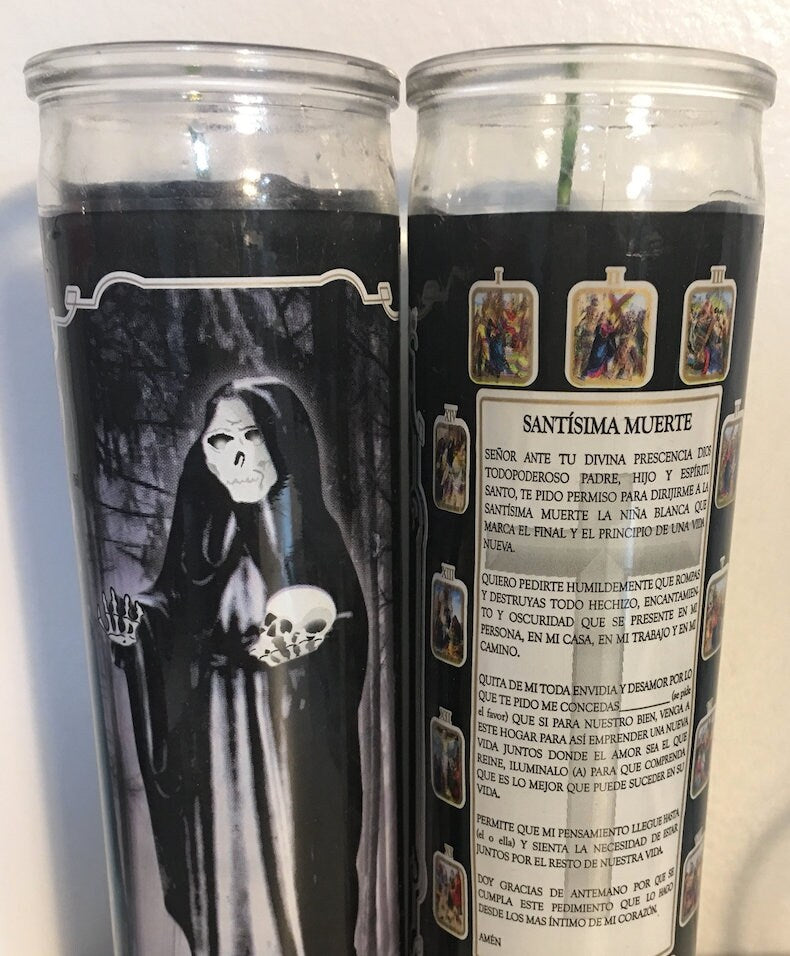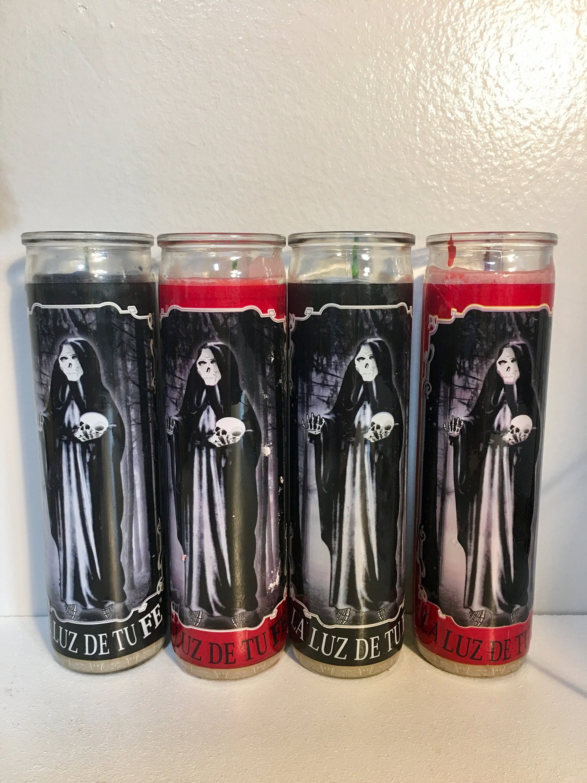 Santa Muerte Veladora Negra con Oracion, Roja, Holy Death Black Prayer Candle, Red, Santisima Muerte 7 day Candle