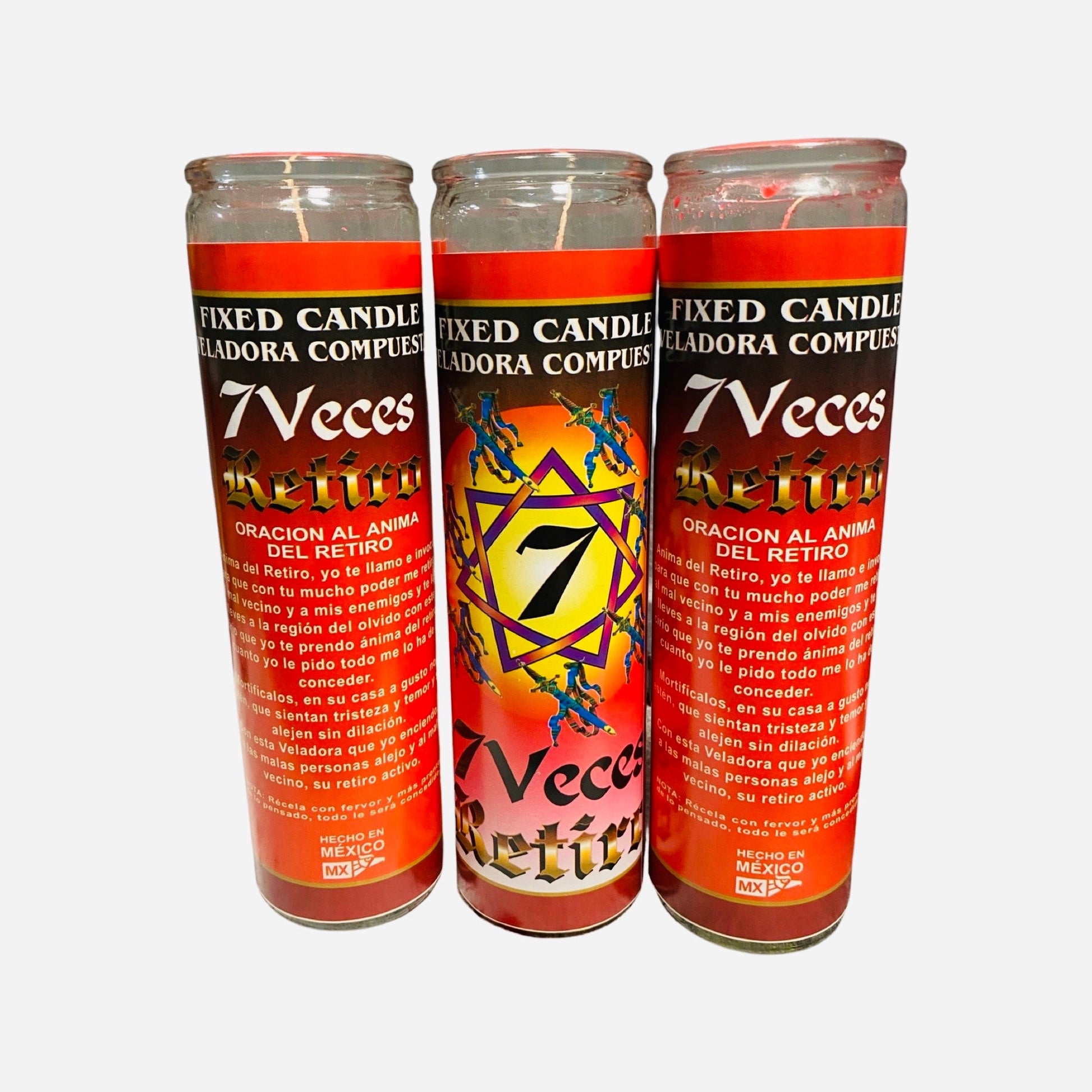 Veladora 7 Veces del Retiro, 7x Times Retirement - Go Away Fixed Candle. Retira Enemigos
